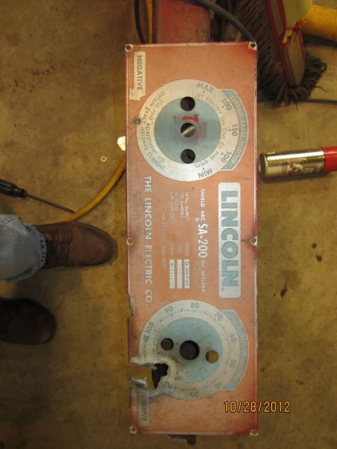The front panel cleaned up real well. I had to weld in a patch where it looked like someone walked up to the panel to adjust the current, and they burned a hole out of the bottom lip. I also moved all controls and gauges to the front, using Murphy switches. All control wiring will be new 12 gauge.