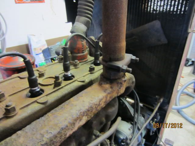 In this photo, you can see the exhaust pipe has been slit, and is attached with a clamp. I'll probably wind up buying a new manifold.
