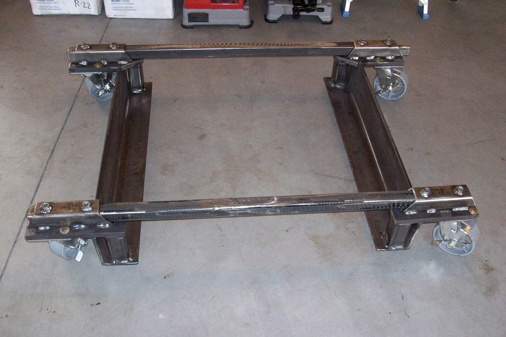 This is my version...basically made up an angle iron tray for it to drop intp...then welded on the brackets for casters. Get good casters...these are rated at 800 lbs each. This rig weighs almost 900 lbs with the cast table and all the tools.