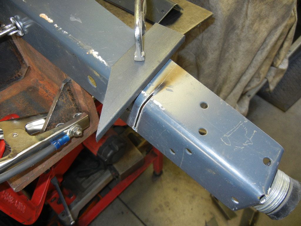 Reply:Here's what I'm going to be building Monday. It's my version of the HTC bases shown by RWH. The tube will be 16ga 2x3 and the plates will be 11ga with 1x1/8 stiffeners. The pictures don't show the locking mechanism for the fixed casters, but it will consist of an upside down carriage that will push down on the top of the wheel. I am hoping the domed head will keep it from digging into the caster wheel's rubber.
